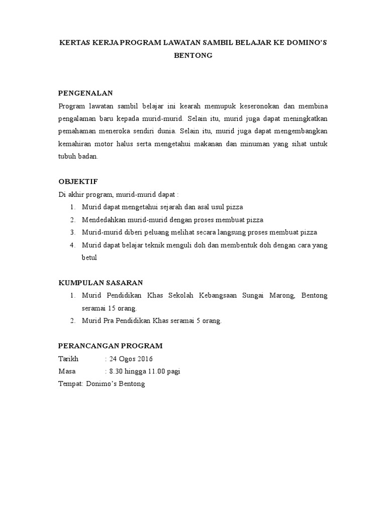 Kertas Kerja Lawatan Sambil Belajar Domino S 2016 Pdf